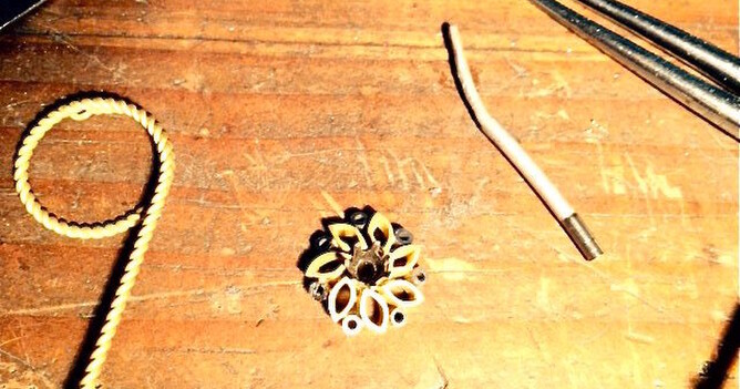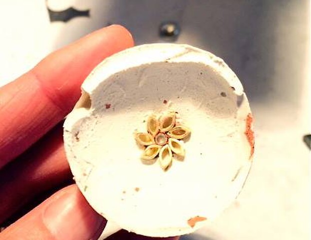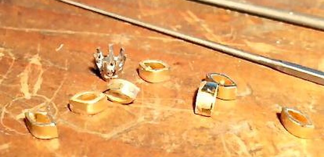 Plaster investment poured over the clay and left to dry. Settings held in place for easier soldering.