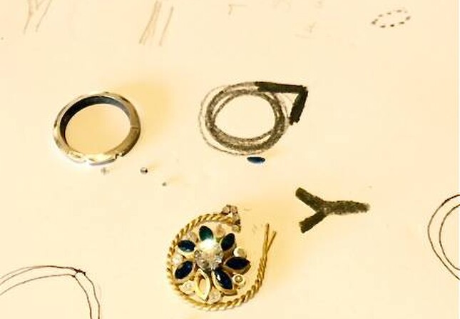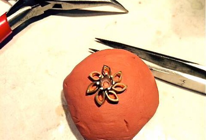 Pieces placed in clay