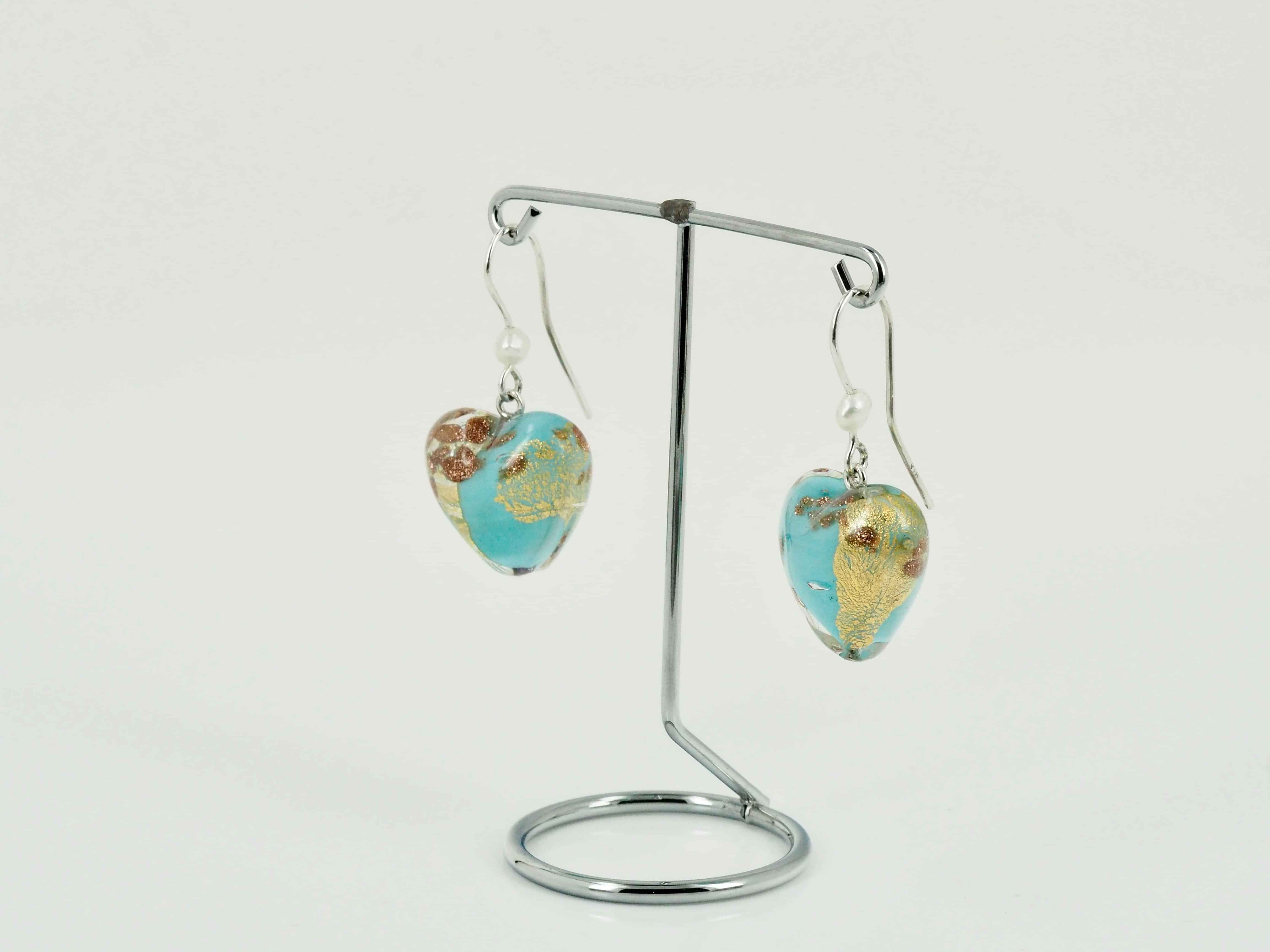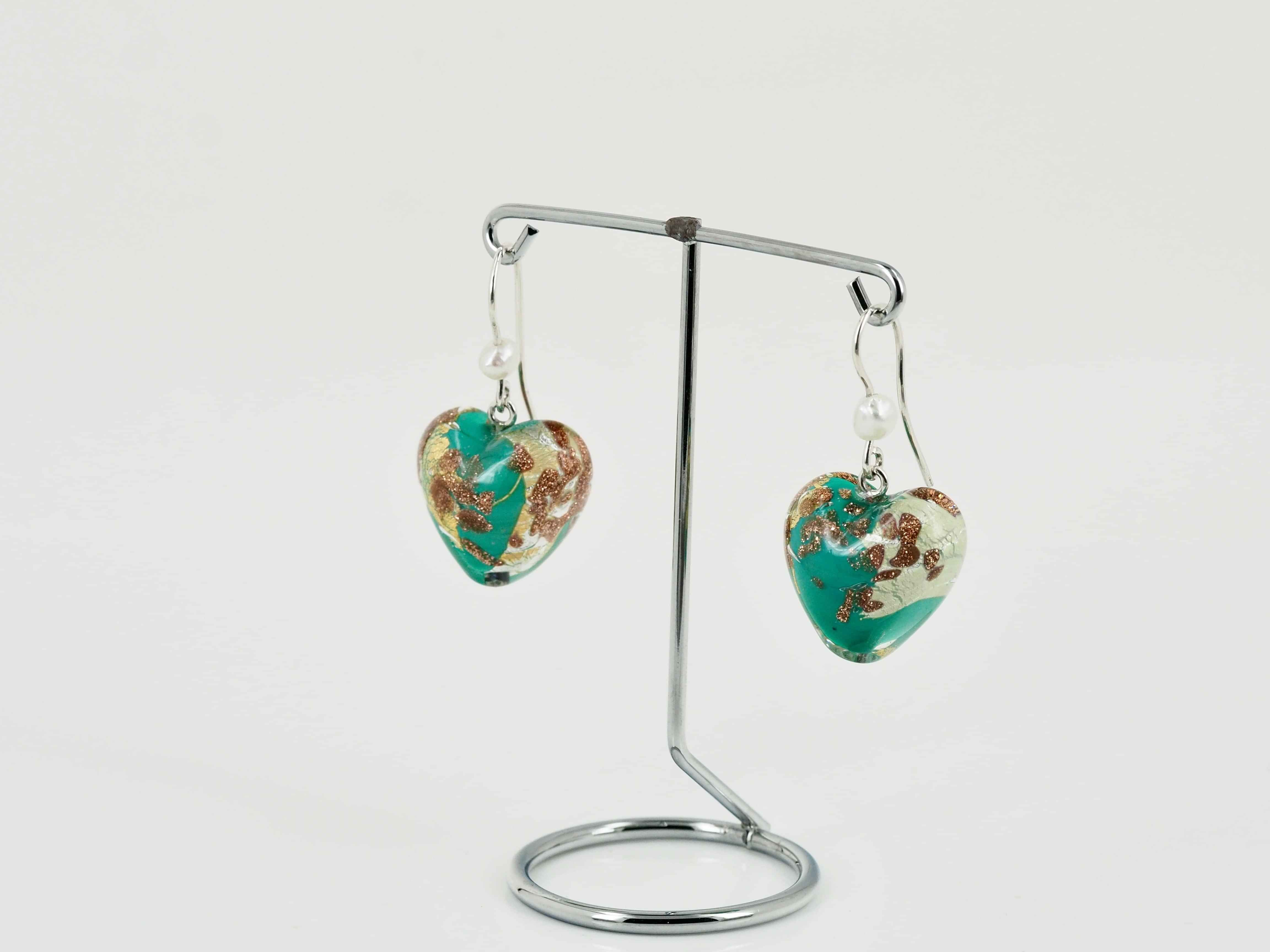 Pretty coloured Murano glass hearts with tiny freshwater pearls.