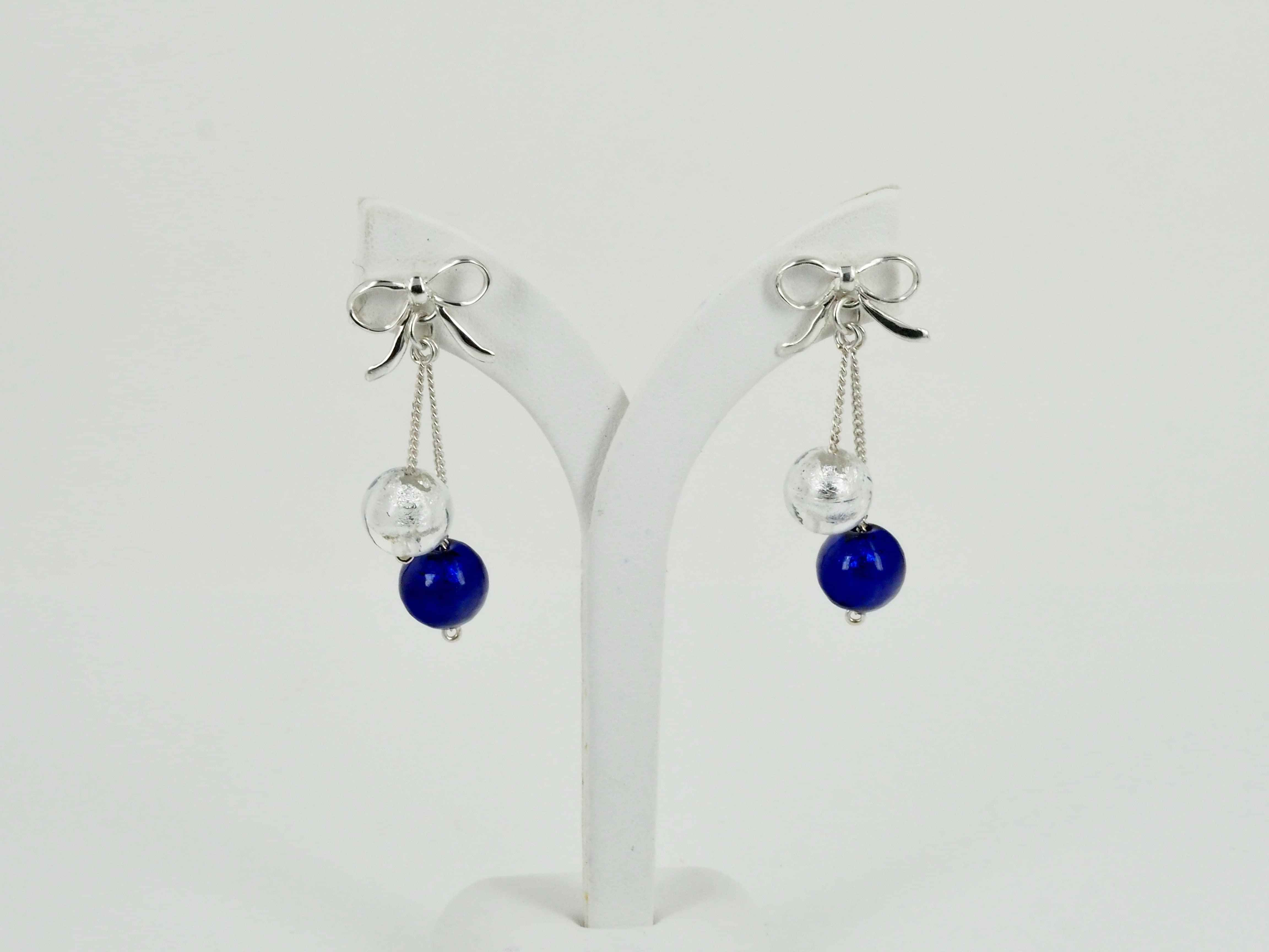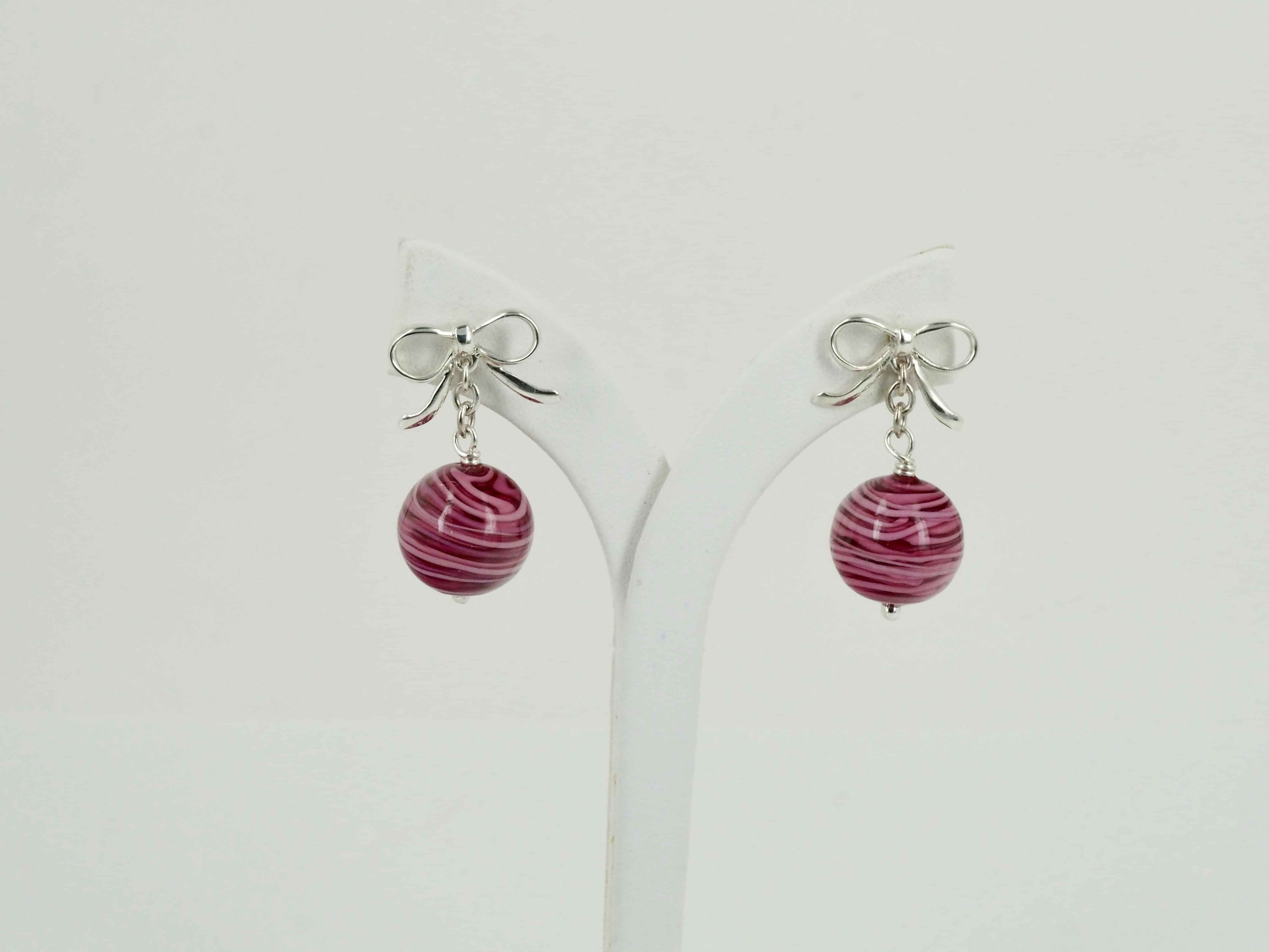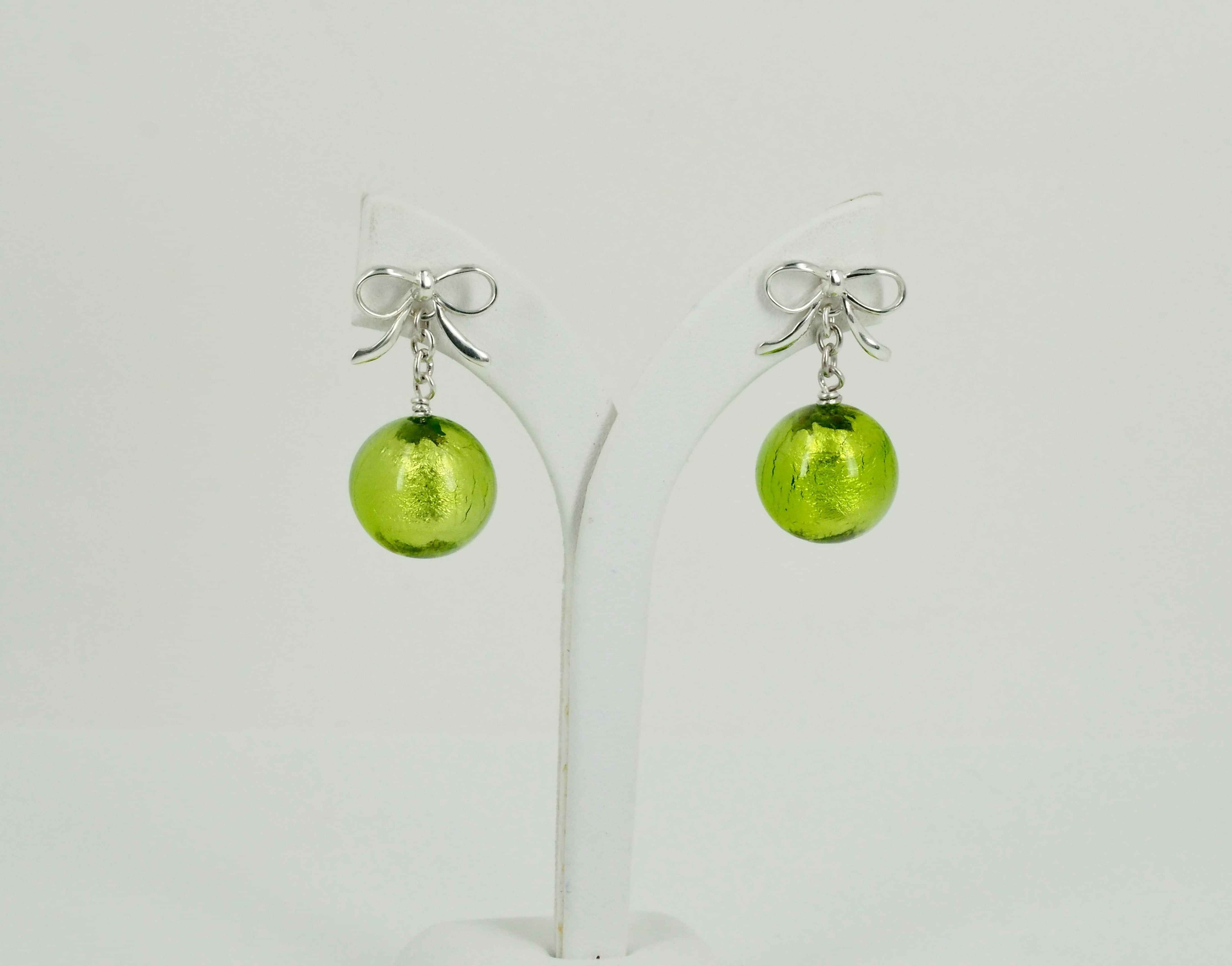 Earrings - Colourful Murano glass beads with a sterling silver triple bow on top.