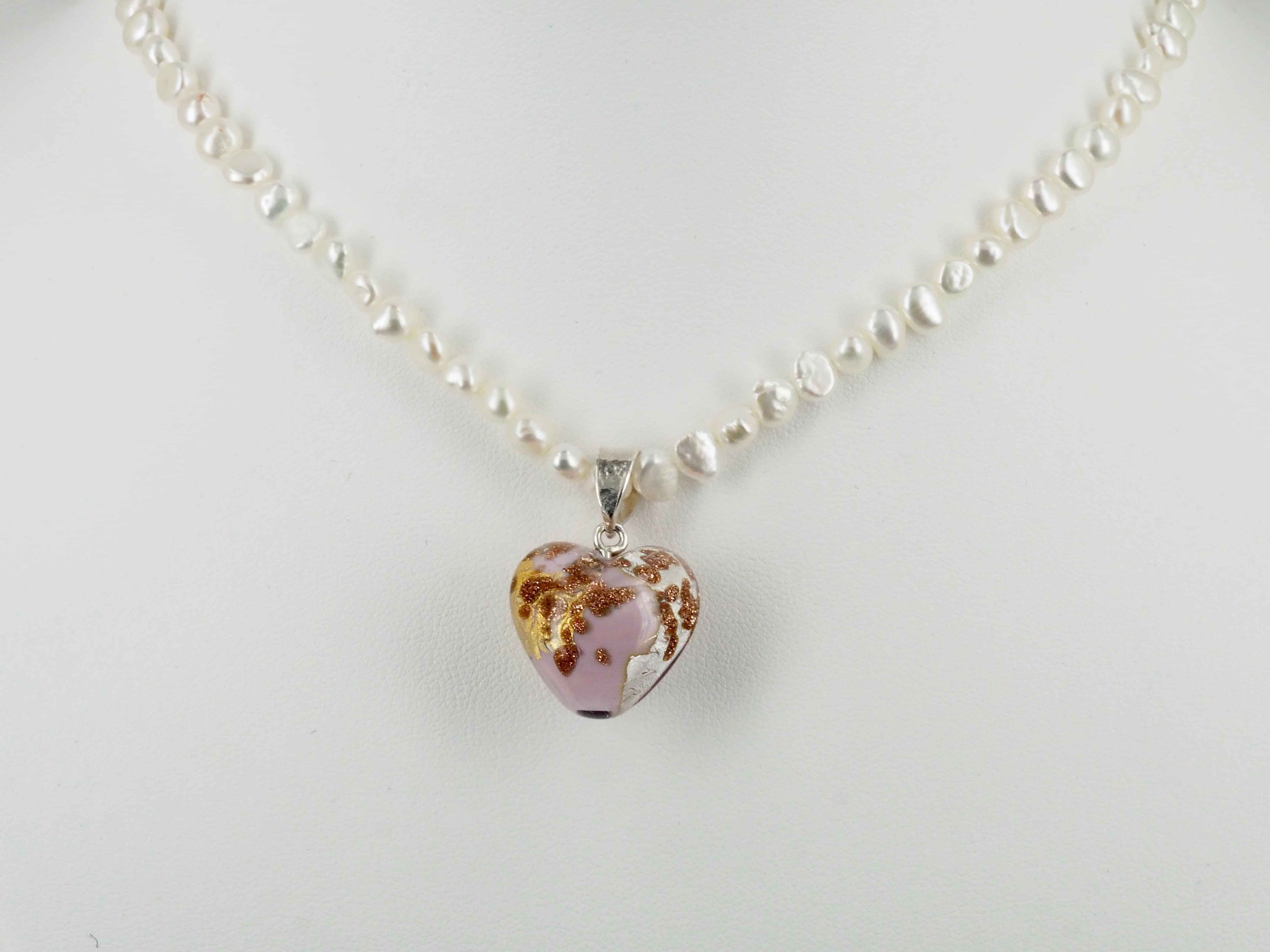 A pretty pink handmade Murano glass heart with a sterling silver bail.