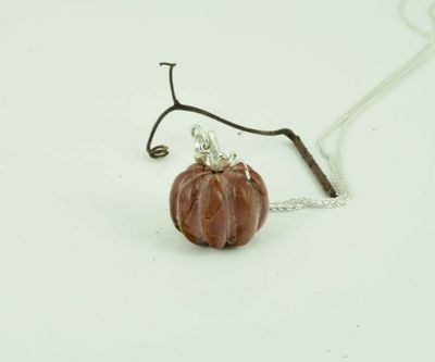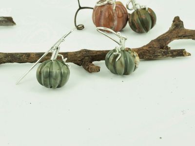 Adorable pumpkin earrings made from carved jasper with handmade sterling silver fittings.