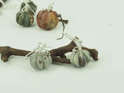 Adorable pumpkin earrings made from natural coloured jasper and handmade sterling silver fittings.