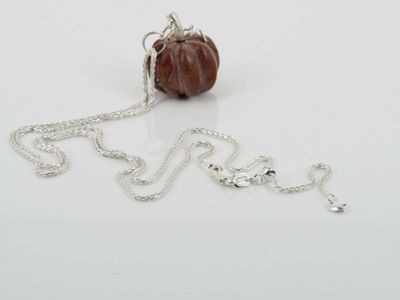 Natural coloured jasper carved as a pumpkin with handmade sterling silver fittings.